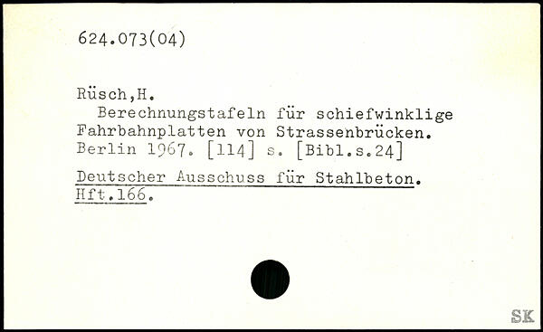 Berechnungstafeln für schiefwinklige Fahrbahnplatten von Strassenbrücken.