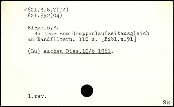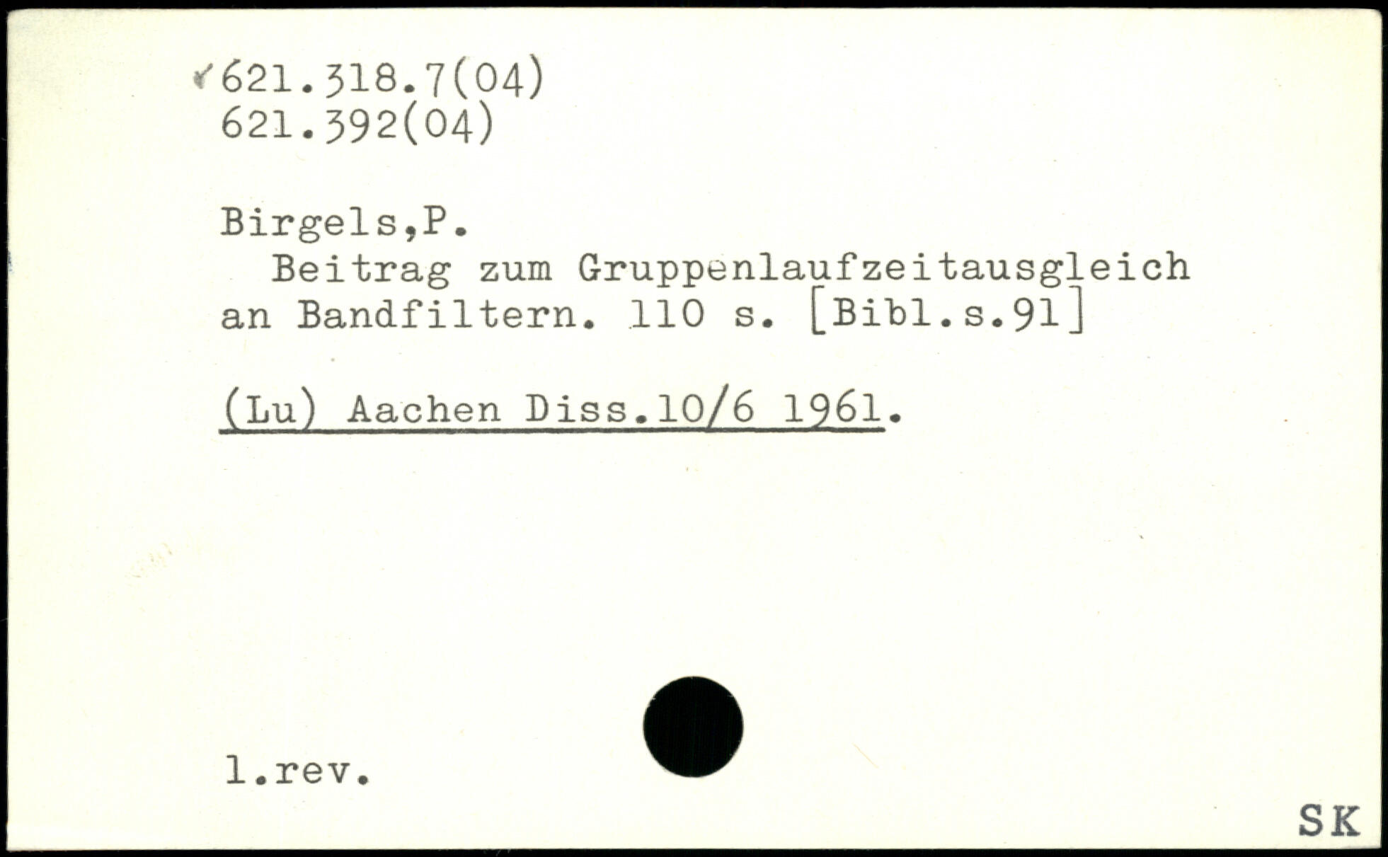 Beitrag zum Gruppenlaufzeitausgleich an Bandfiltern.