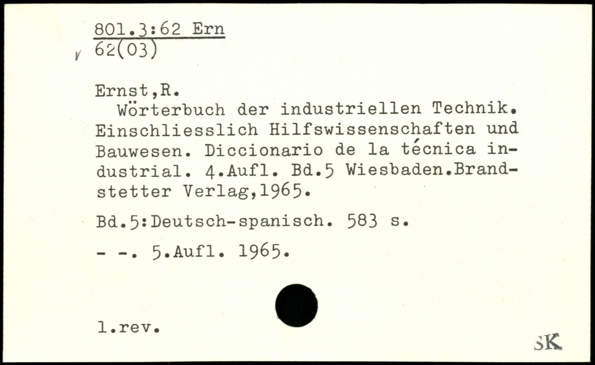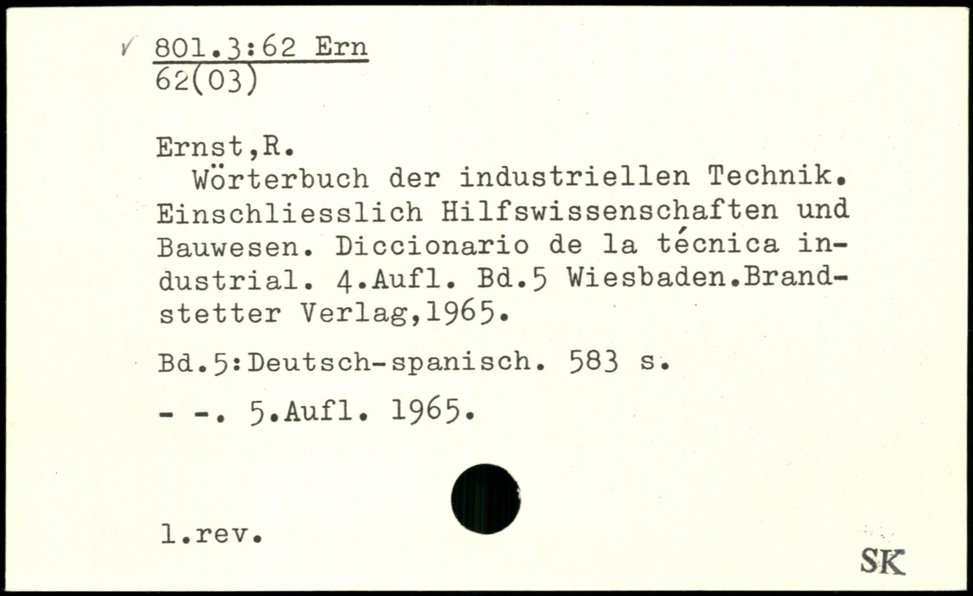 Wörterbuch der industriellen Technik. Einschliesslich Hilfswissenschaften und Bauwesen. Diccionario de la tecnica industrial.
