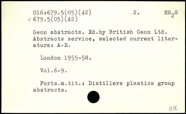 Geon abstracts. Ed.by British Geon Ltd. Abstracts service, selected current literature: A-E.