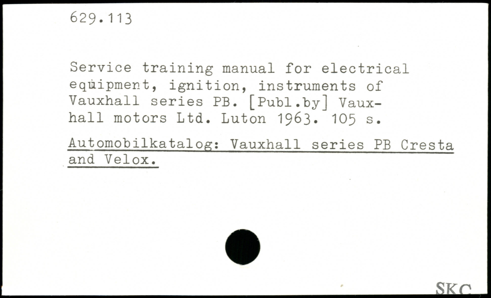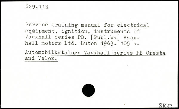 Service training manual for electrical equipment, ignition, instruments of Vauxhall series PB.