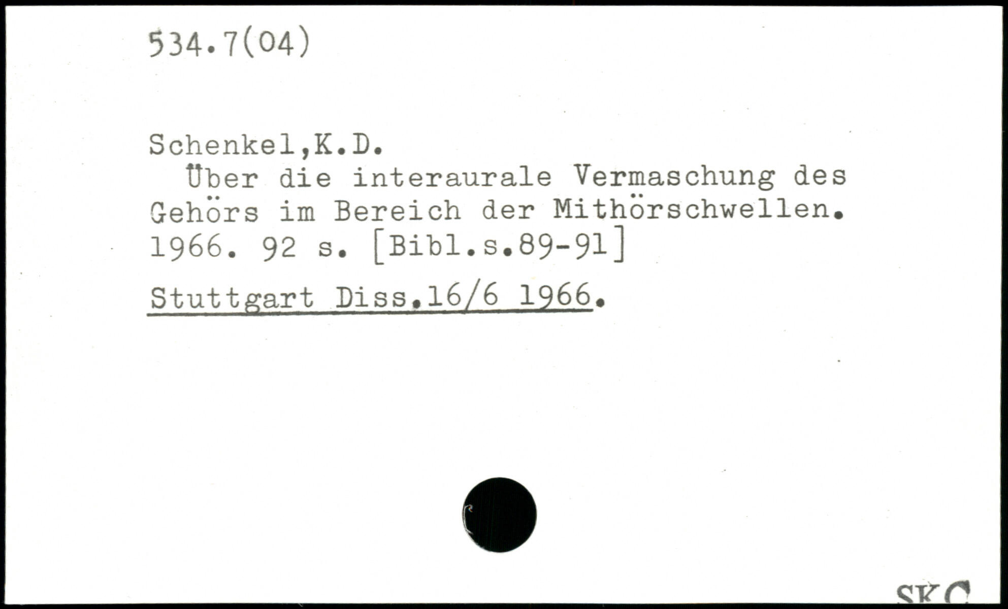 Uber die interaurale Vermaschung des Gehörs im Bereich der Mithörschwellen. 1966.