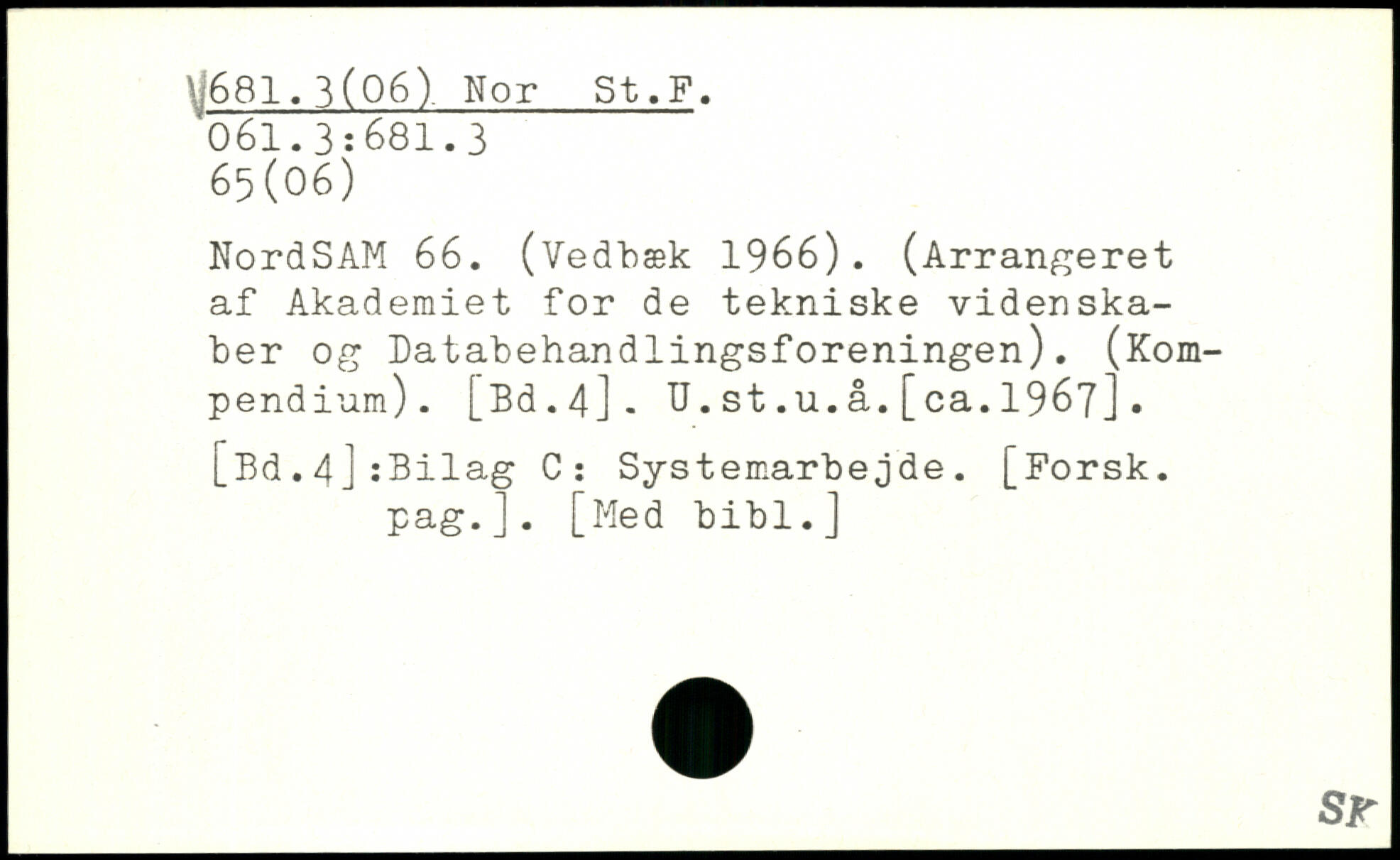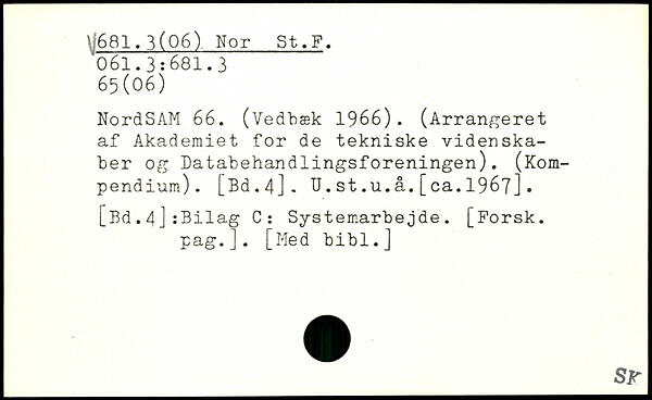 NordSAM 66. (Vedbæk 1966). (Arrangeret af Akademiet for de tekniske videnskaber og Databehandlingsforeningen). (Kompendium). [