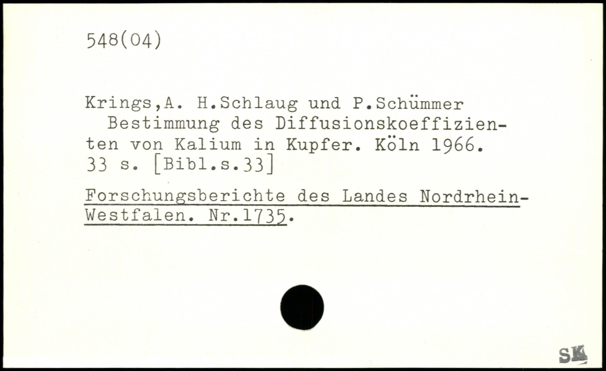Krings,A. H.Schlaug und P.Schummer Bestimmung des Diffusionskoeffizienten von Kalium in Kupfer.