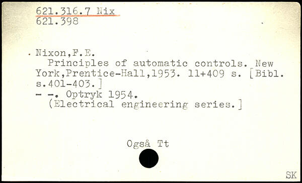 . Nixon,P.E. Principles of automatic controls.