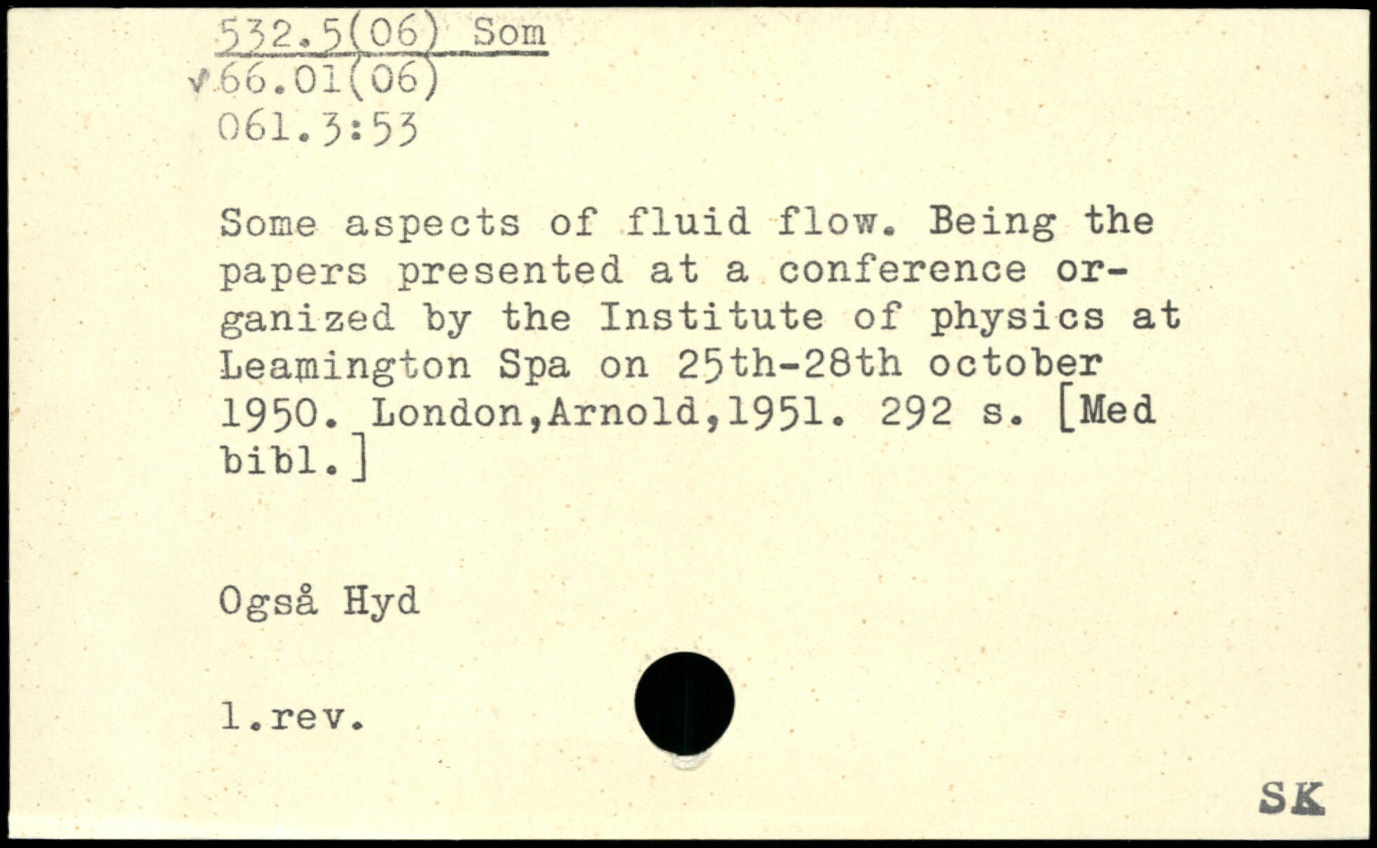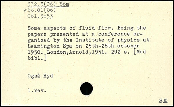 Some aspects of fluid flow. Being the papers presented at a conference organized by the Institute of physics at Leamington Spa on 25th-28th October 1950
