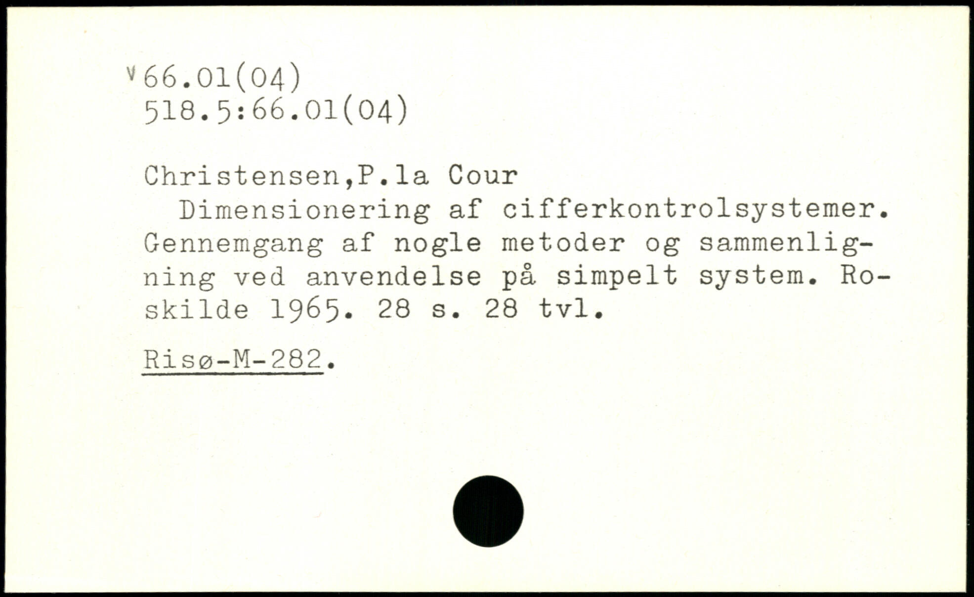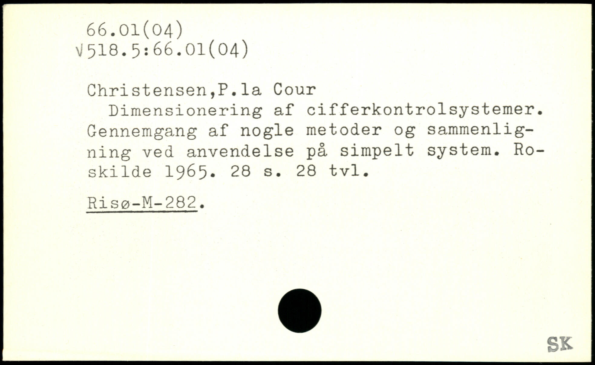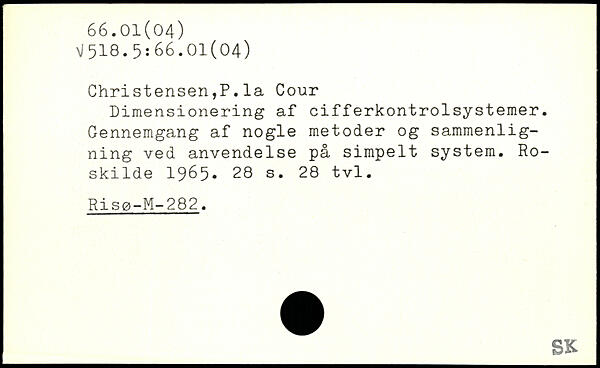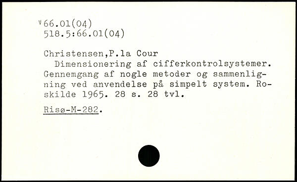 Christensen,P.la Cour Dimensionering af cifferkontrolsystemer. Gennemgang af nogle metoder og sammenligning ved anvendelse på simpelt system. Roskilde 1965.