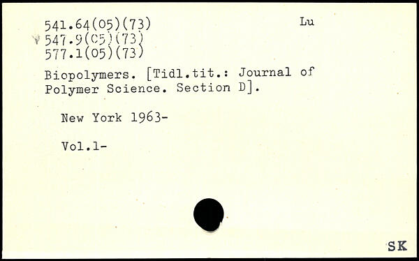 Biopolymers. [Tidl.tit,: Journal of Polymer Science. Section D].