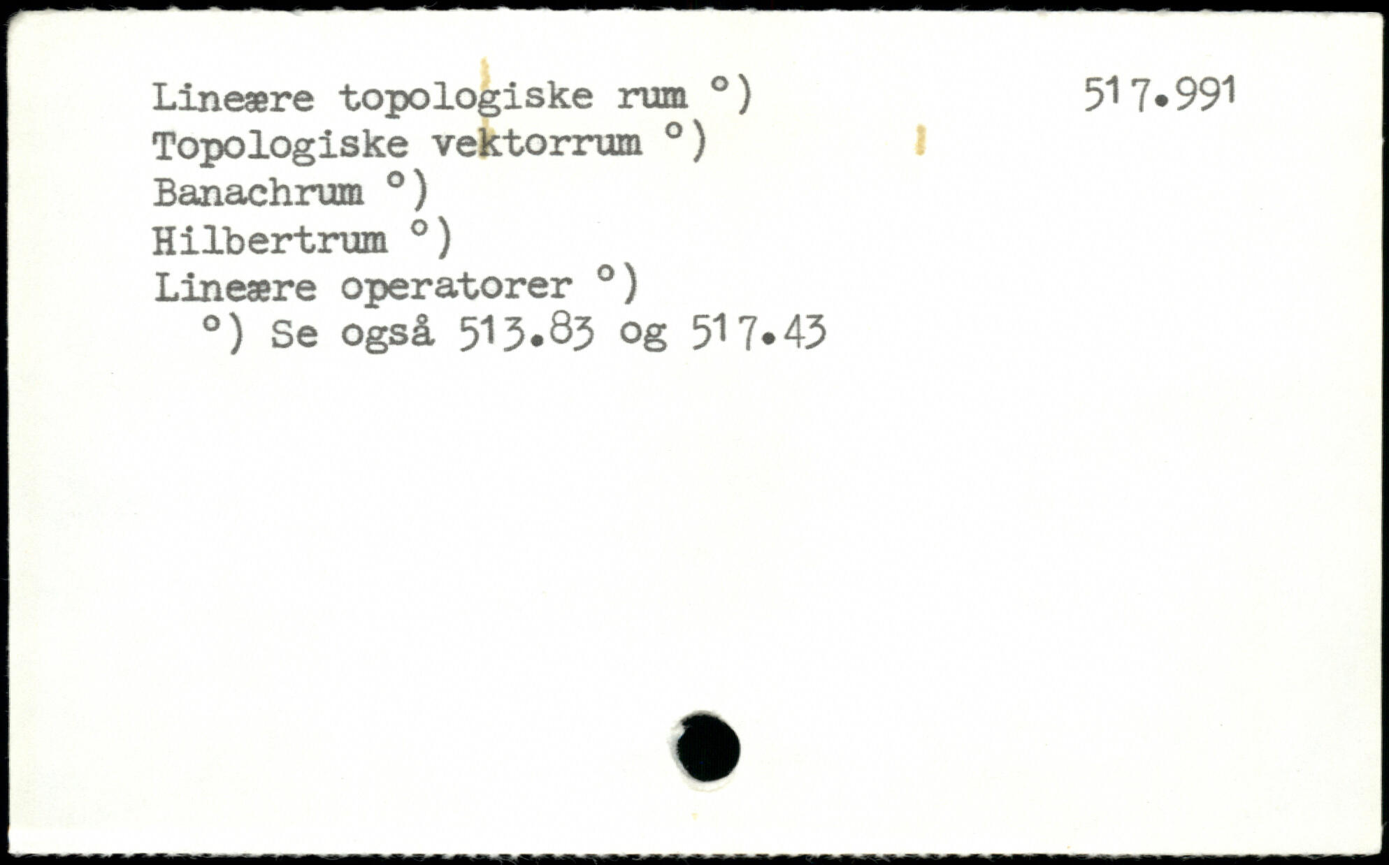 Lineære topologiske rum .) 517,991 Topologiske vektorrum .) Banachrum .) Hilbertrum .) Lineære operatorer .) .) Se også .S 517,43