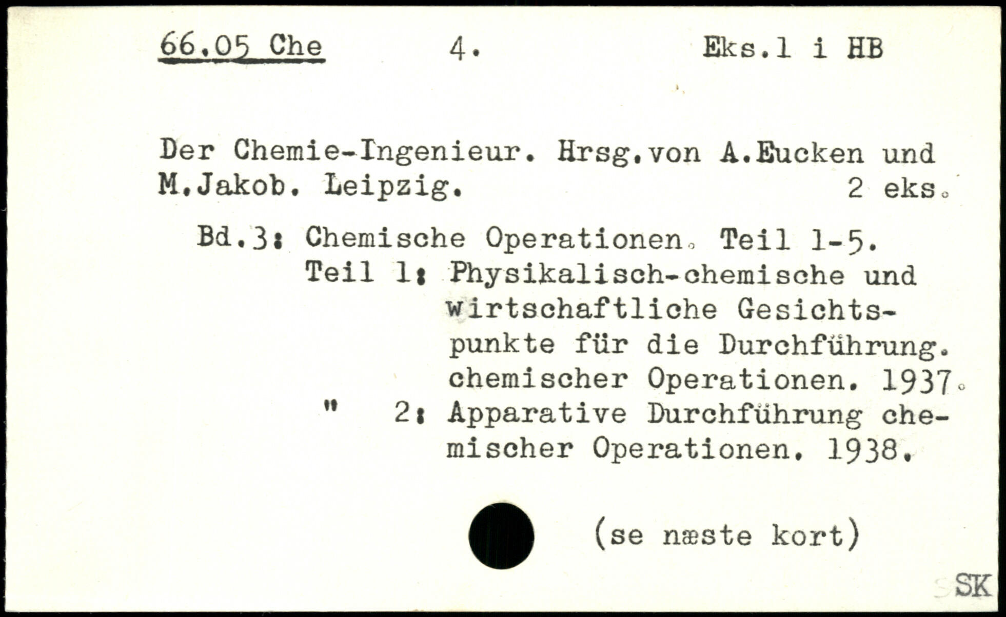 Der Chemie-Ingenieur. Hrsg,von A.Eucken und M,Jakob. Leipzig. 2 eks, Bd,3i Chemische Operationen, Teil 1-5. Teil lj Physikalisch-chemische und wirtschaftliche Gesichtspunkte für die Durchführung, chemischer Operationen. 1937, " 2t Apparative Durchführung chemischer Operationen, 1938,