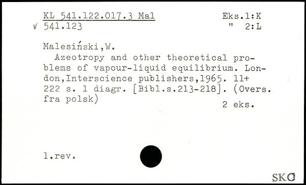 Azeotropy and other theoretical problems of vapour-liquid equilibrium.