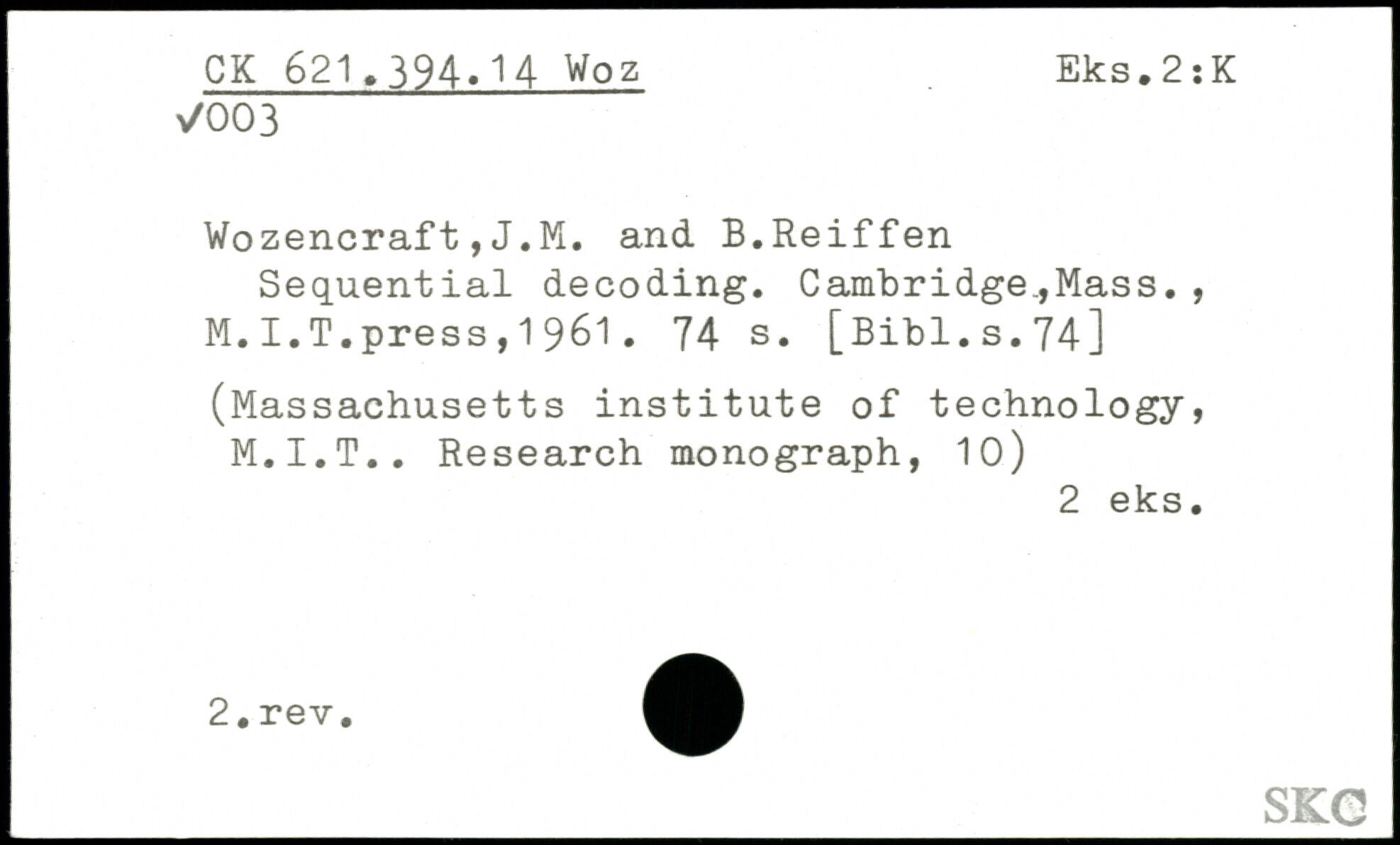 Forfatter: J.M. Wozencraft, B. Reiffen