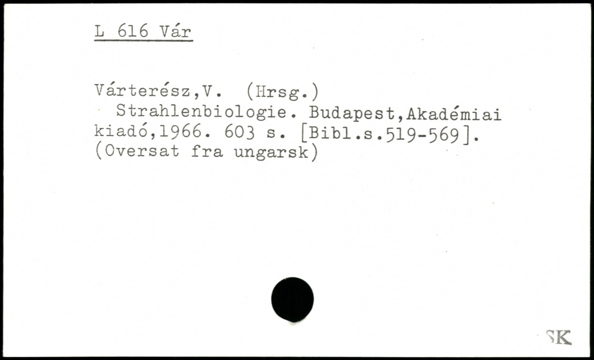 Värteresz,V. (i-Irsg.) Strahlenbiologie.
