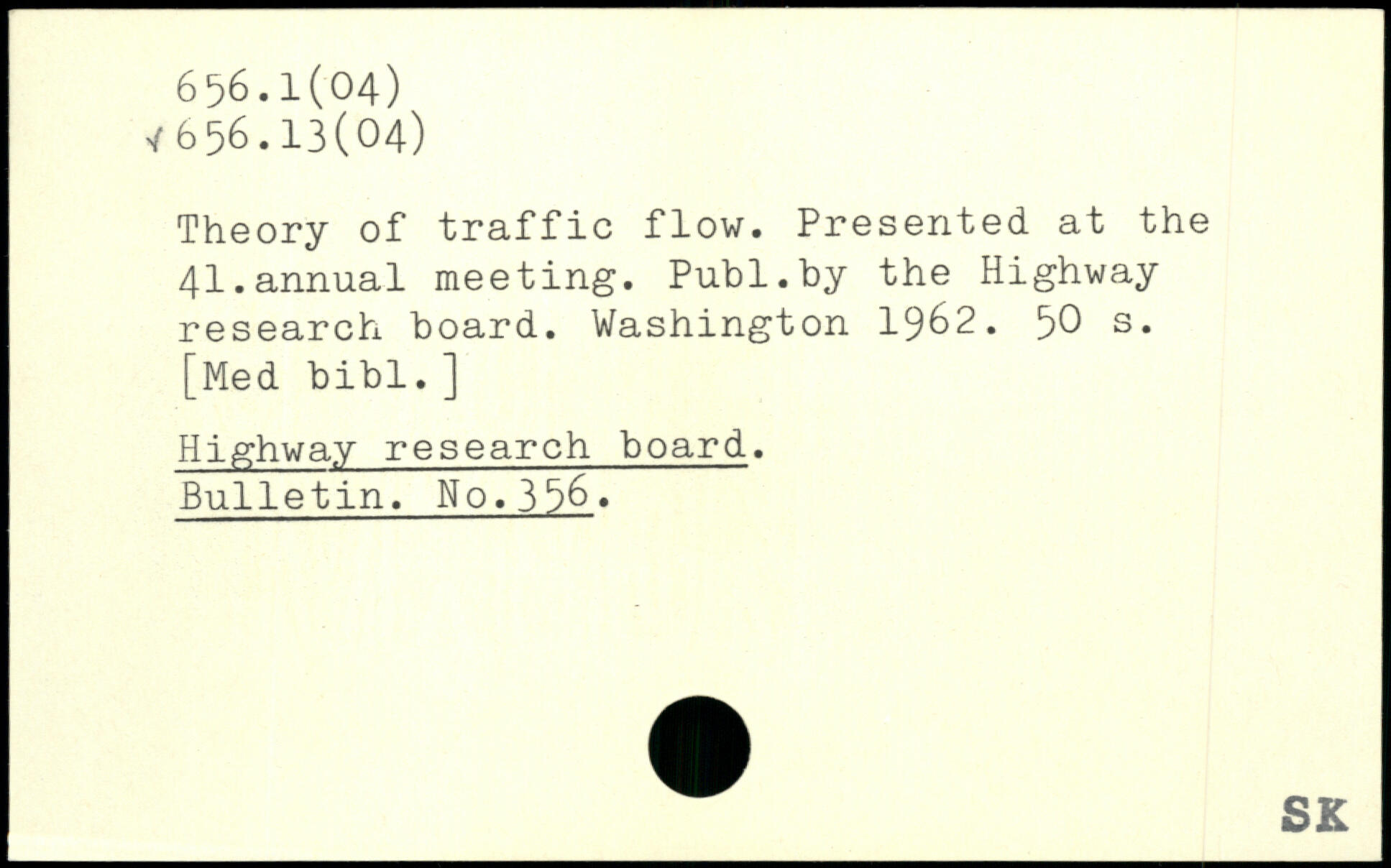 Theory of traffic flow. Presented at the 41.annual meeting.