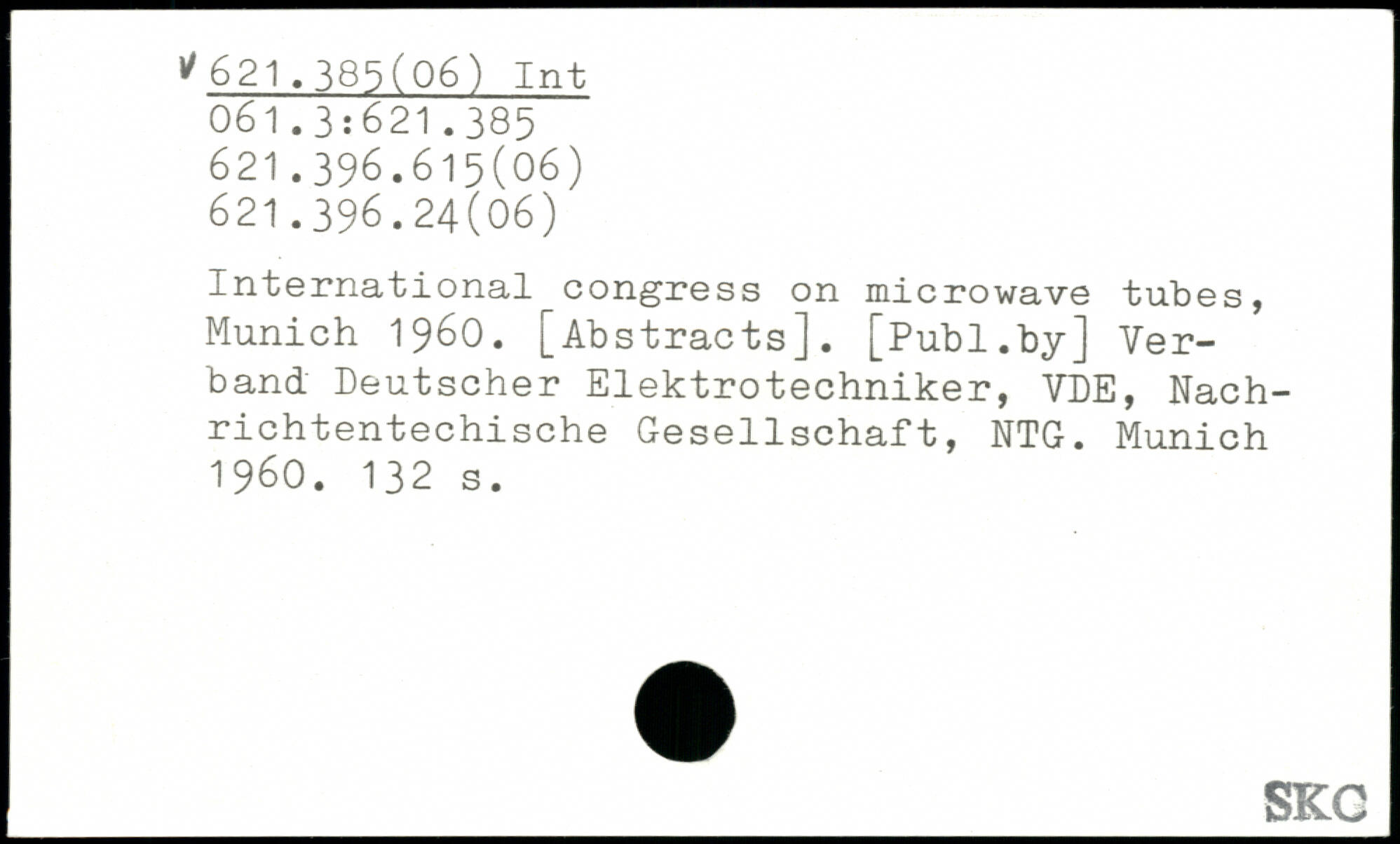International congress on microwave tubes, Munich 1960. [Abstracts]