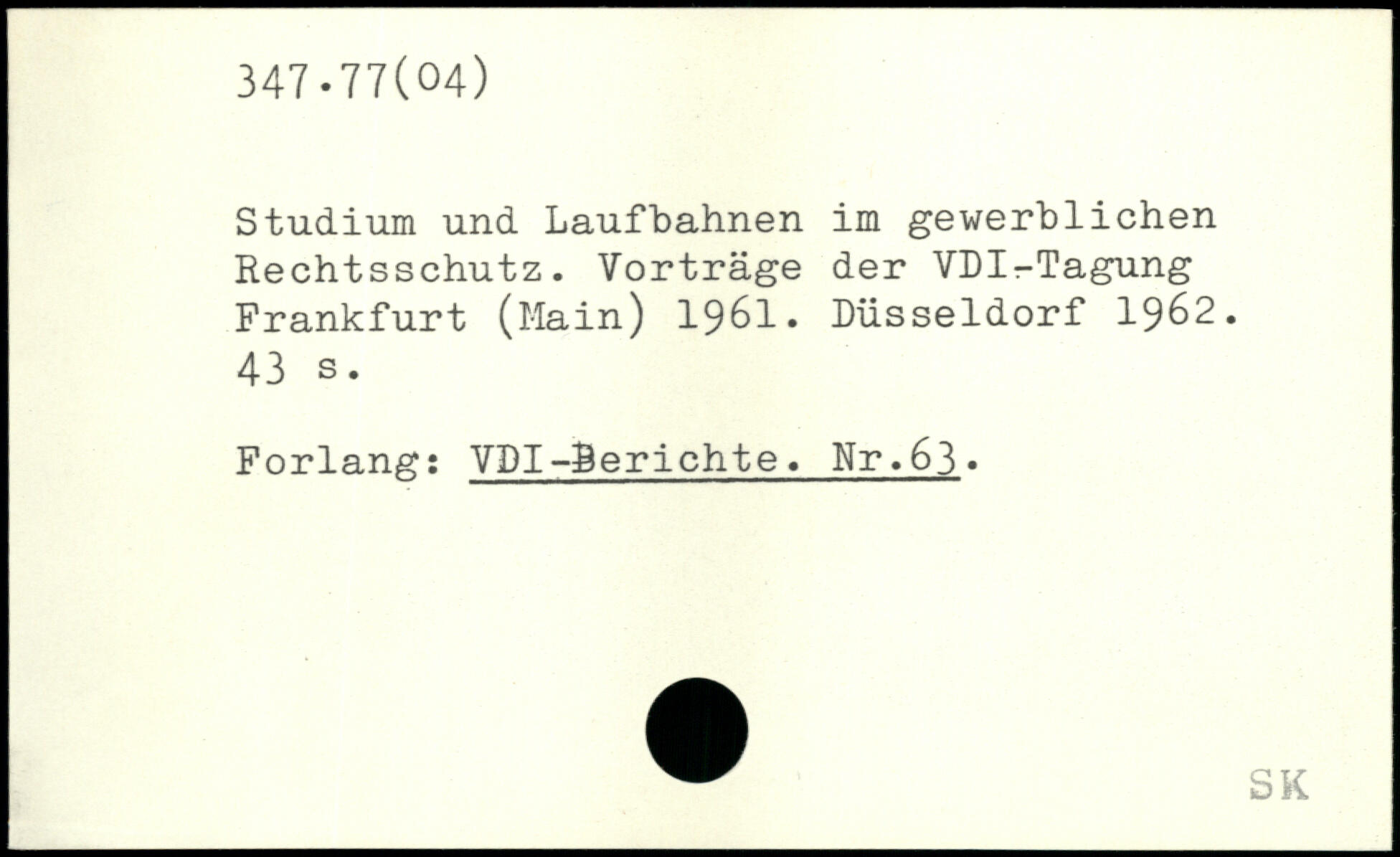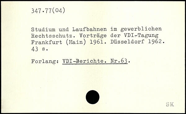 Studium und Laufbahnen im gewerblichen Rechtsschutz. Vorträge der VDI-Tagung Frankfurt (Main) 1961. Düsseldorf 1962.