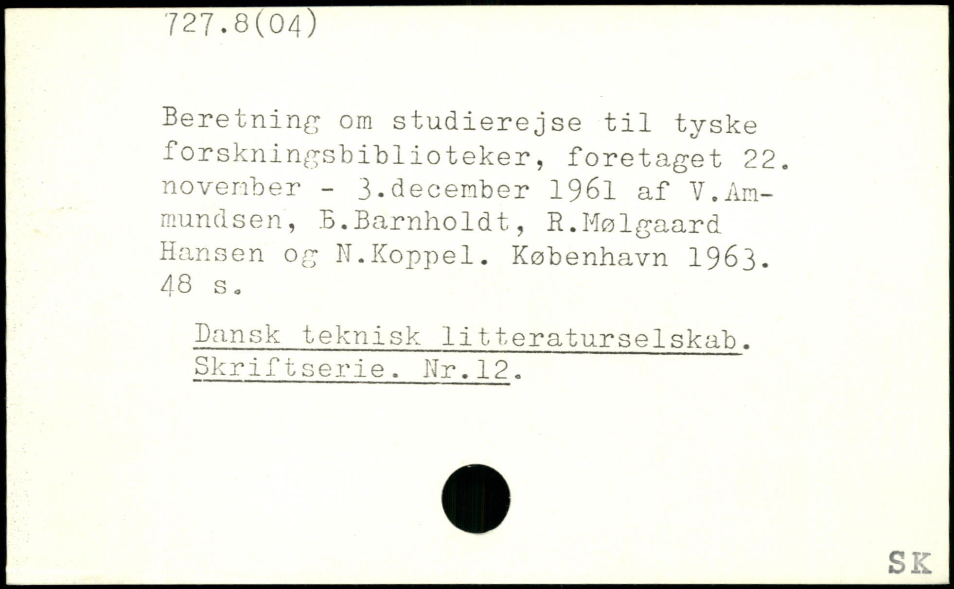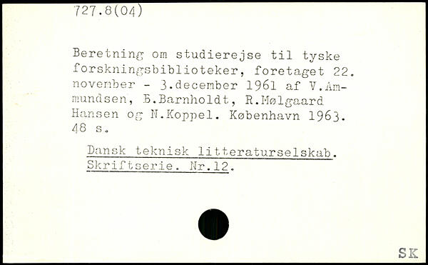 Beretning om studierejse til tyske forskningsbiblioteker, foretaget 22. november - 3.december 1961 af V.Am-mundsen, B.Barnholdt, R.Mølgaard Hansen og N.Koppel.
