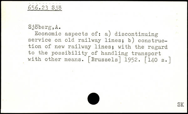 Economic aspects of: a) discontinuing service on old railway lines; b) construction of new railway lines; with the regard to the possibility of handling transport with other means.