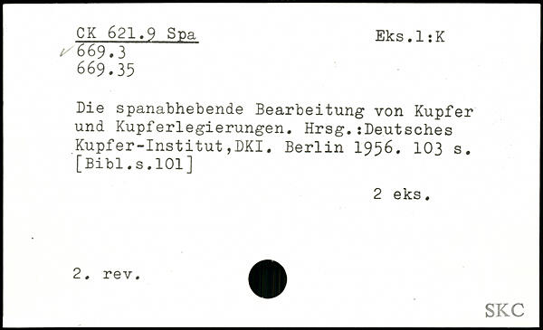 Die spanabhebende Bearbeitung von Kupfer und Kupferlegierungen. Hrsg.iDeutsches Kupfer-Institut,DKI.