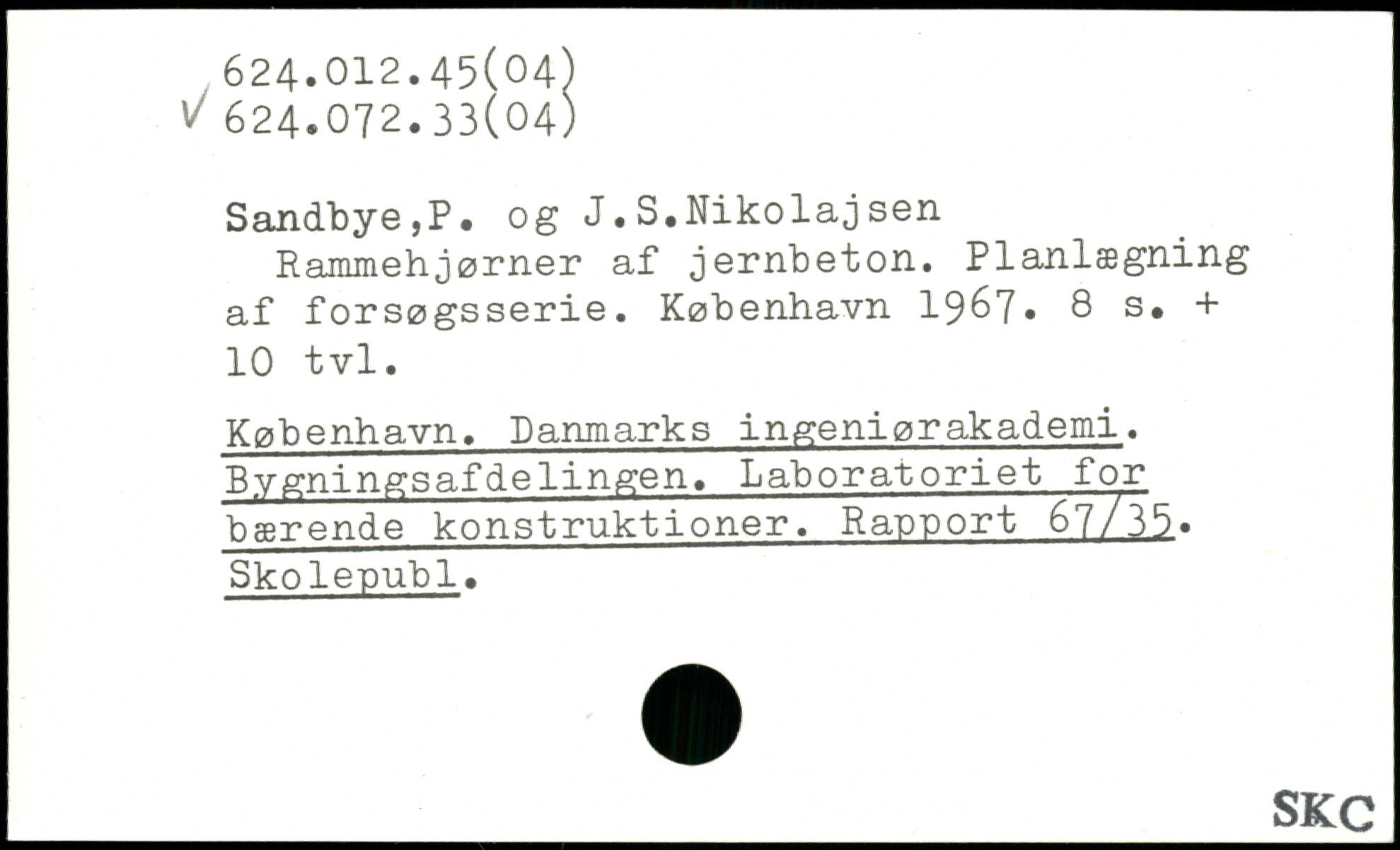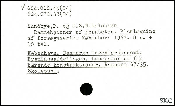 Sandbye,P. og J.S.Nikolaj sen Rammehjørner af jernbeton. Planlægning af forsøgsserie.