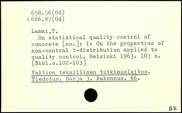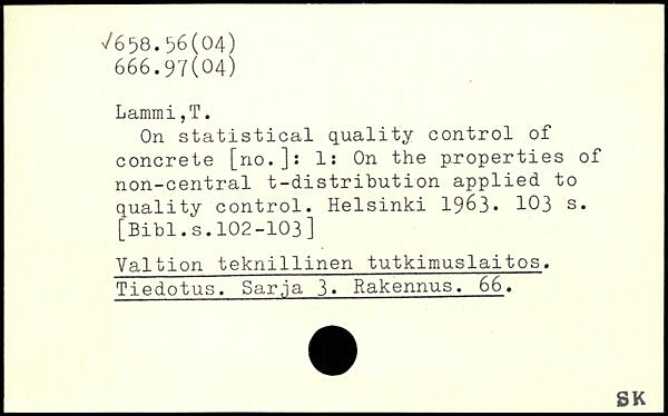 On statistical quality control of concrete [no.]: 1: On the properties of non-central t-distribution applied to quality control.