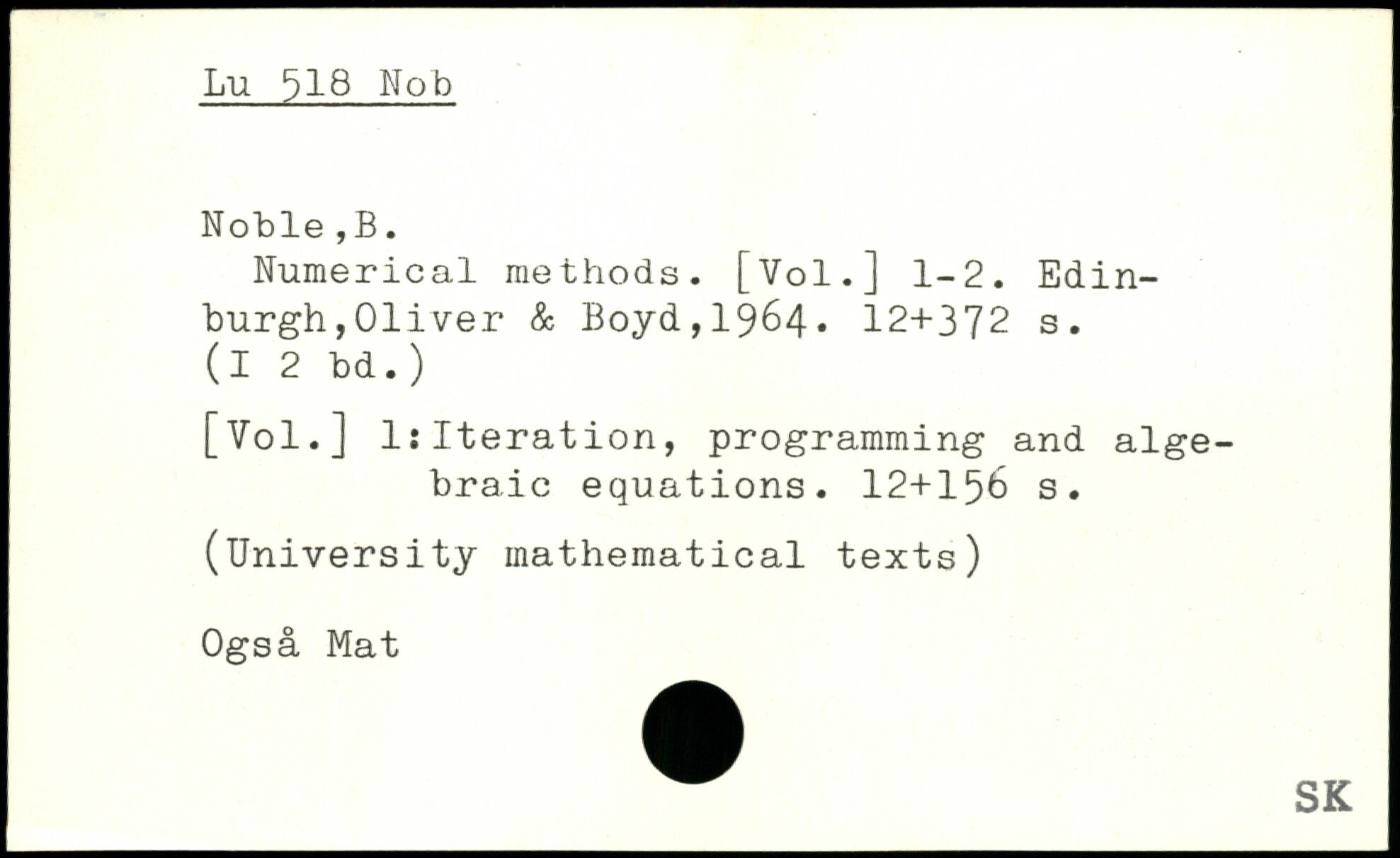 Numerical methods. [Vol.] 1-2.