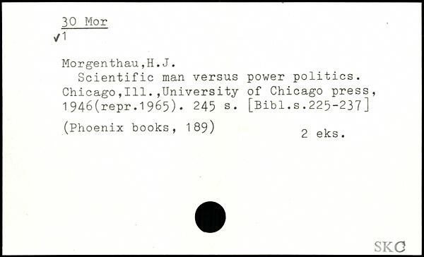 Scientific man versus power politics. Chicago,111.,University of Chicago press, 1946(repr.1965).