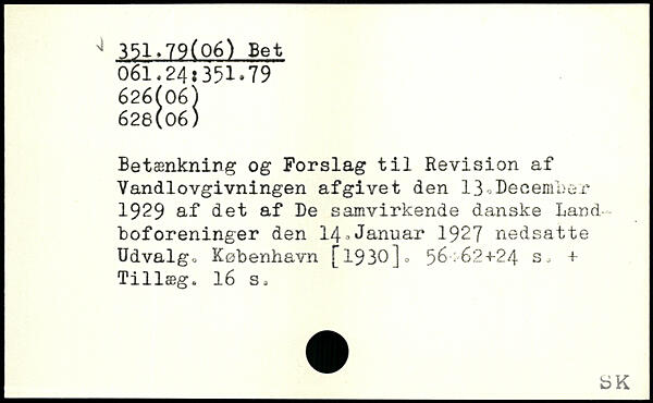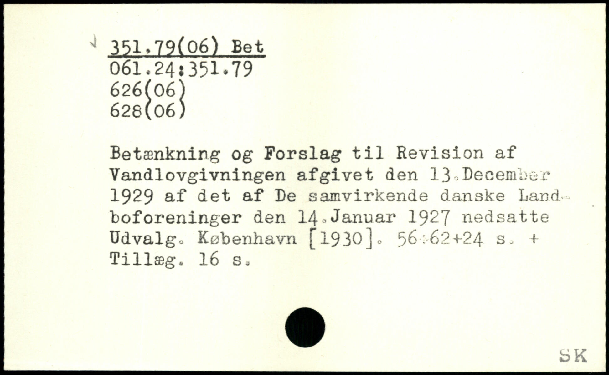 Betænkning og Forslag til Revision af Vandlovgivningen afgivet den 13,December 1929 af det af De samvirkende danske Larsd boforeninger den 14-Januar 1927 nedsatte Udvalg