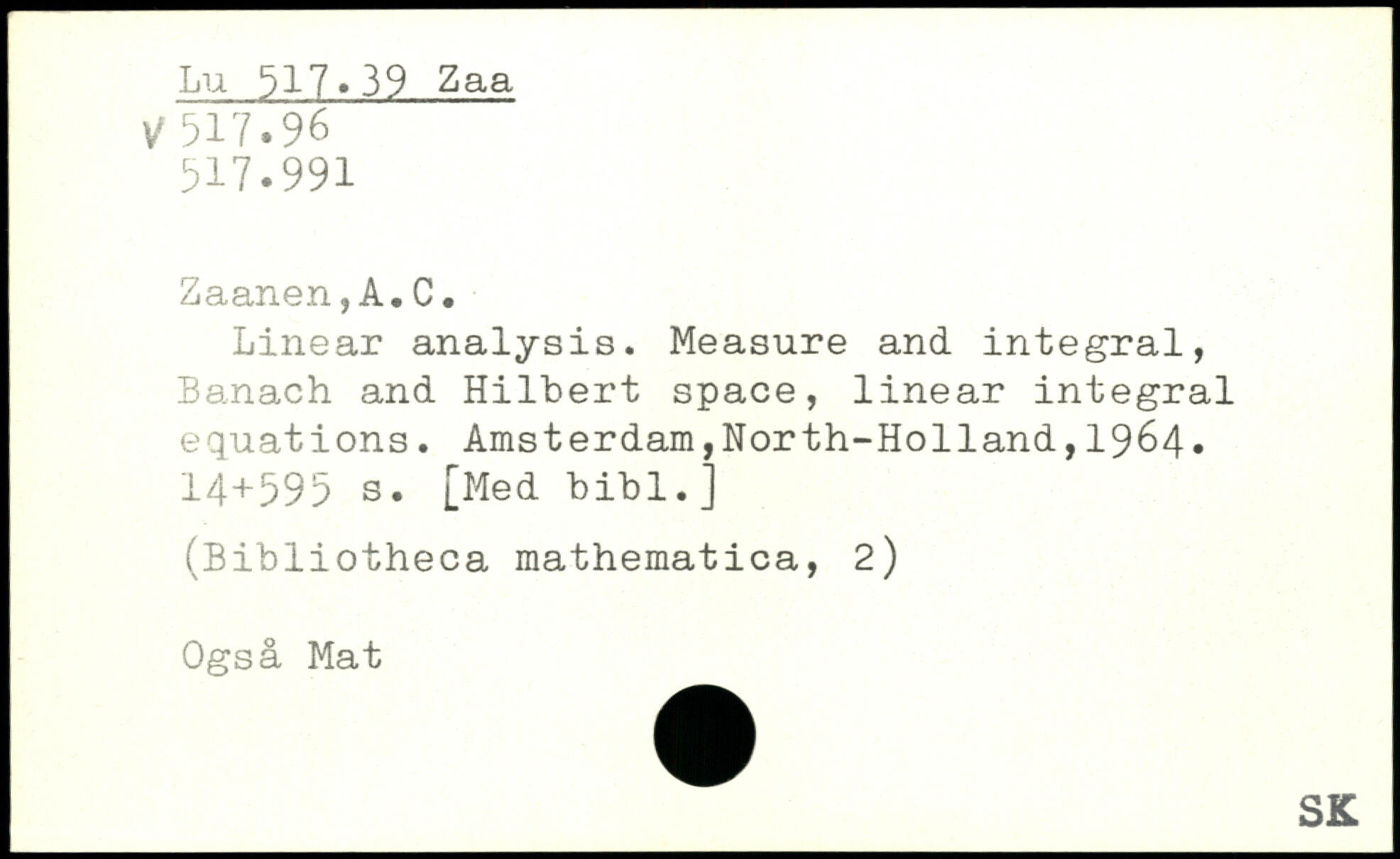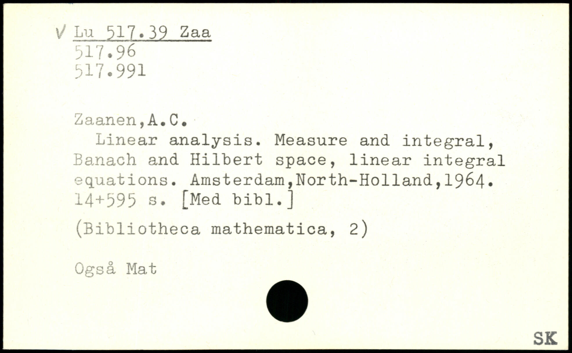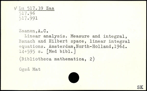 Linear analysis. Measure and integral, Banach and Hilbert space, linear integral equations. Amsterdam,North-Ho11and,1964.