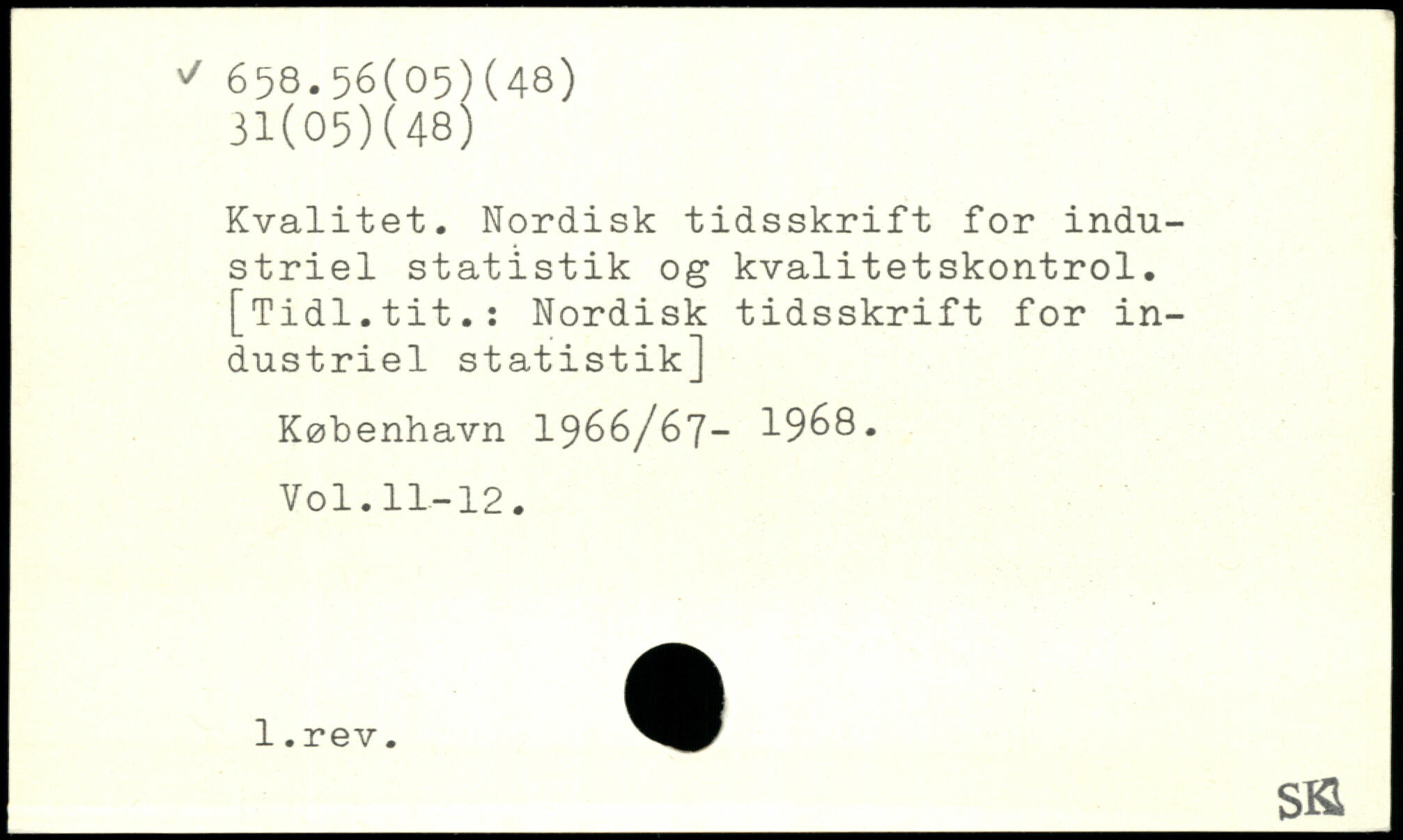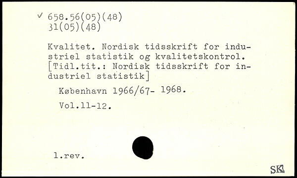 Kvalitet. Nordisk tidsskrift for industriel statistik og kvalitetskontrol. [Tidl.tit.: Nordisk tidsskrift for industriel statistik]
