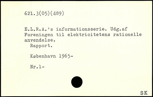E.L.RtA.'s informationsserie. Udg.af Foreningen til elektricitetens rationelle anvendelse. Rapport.