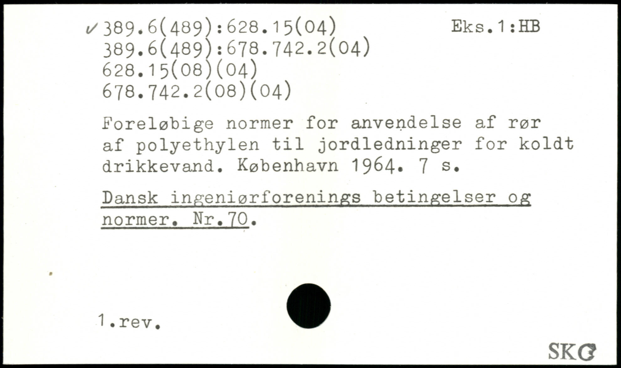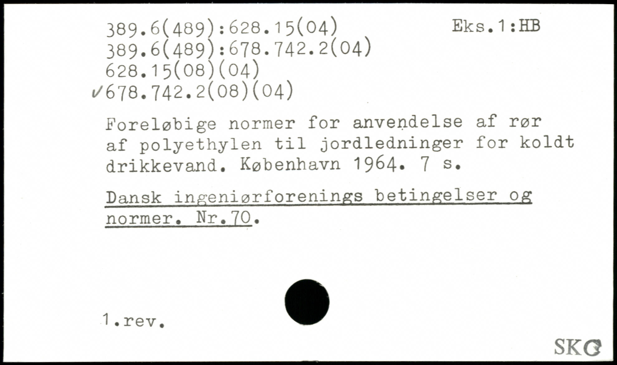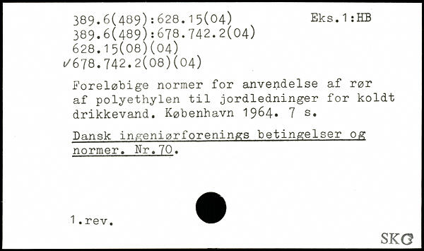 Foreløbige normer for anvendelse af rør af polyethylen til jordledninger for koldt drikkevand.
