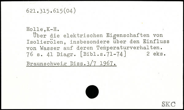 Über die elektrischen Eigenschaften von Isolieroien, insbesondere über den Einfluss von Vasser auf deren Temperaturverhalten.