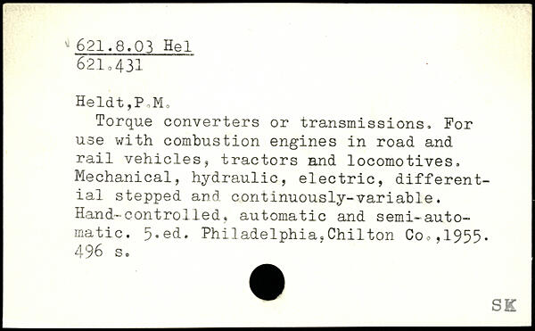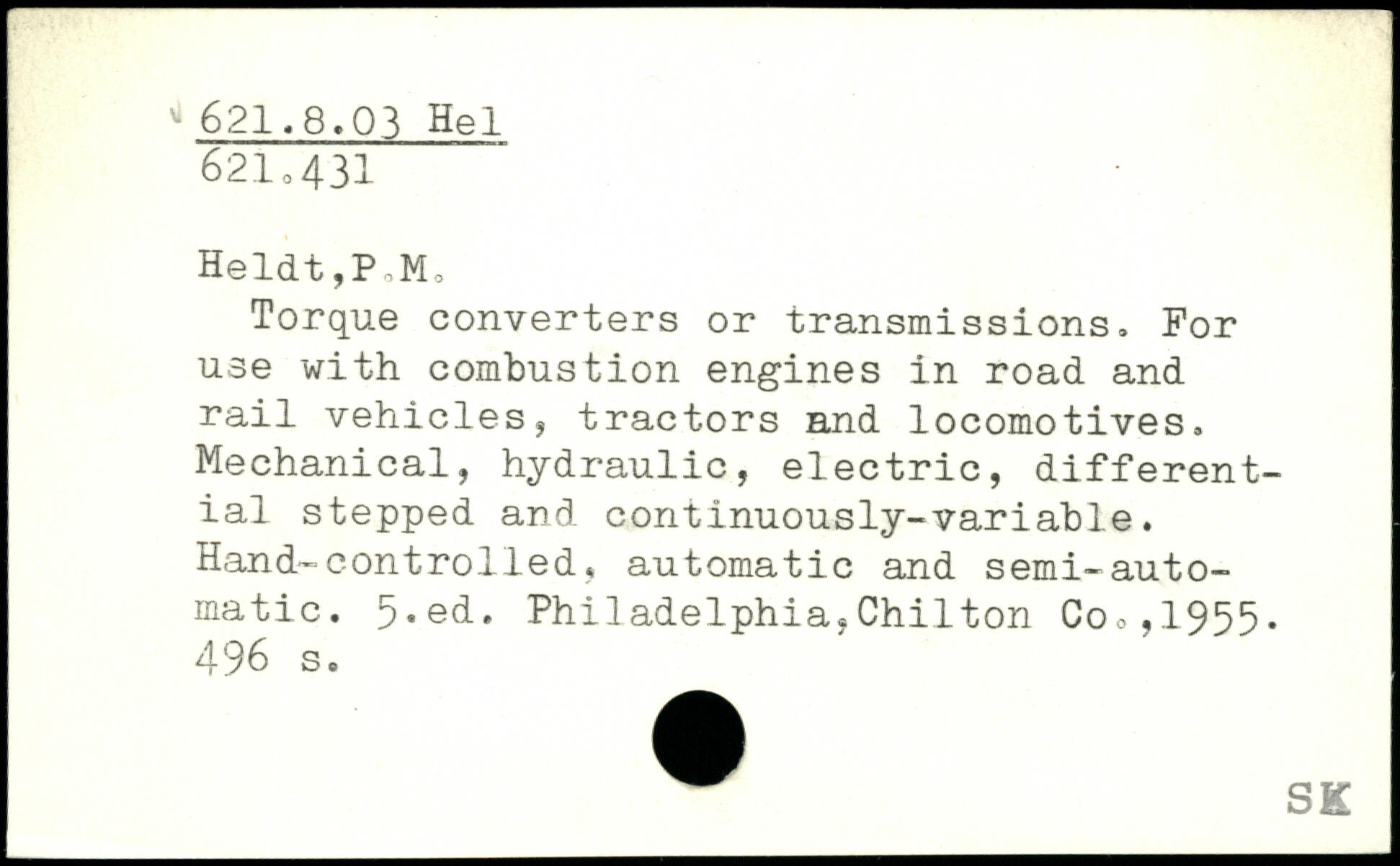 Torque converters or transmissions. For use with combustion engines in road and rail vehicles, tractors and locomotives, Mechanical, hydraulic, electric, differential stepped and continuously-variable. Hand-controlled, automatic and semi-automatic. 5.©H. Philadelphia.Chilton Coo,1955.