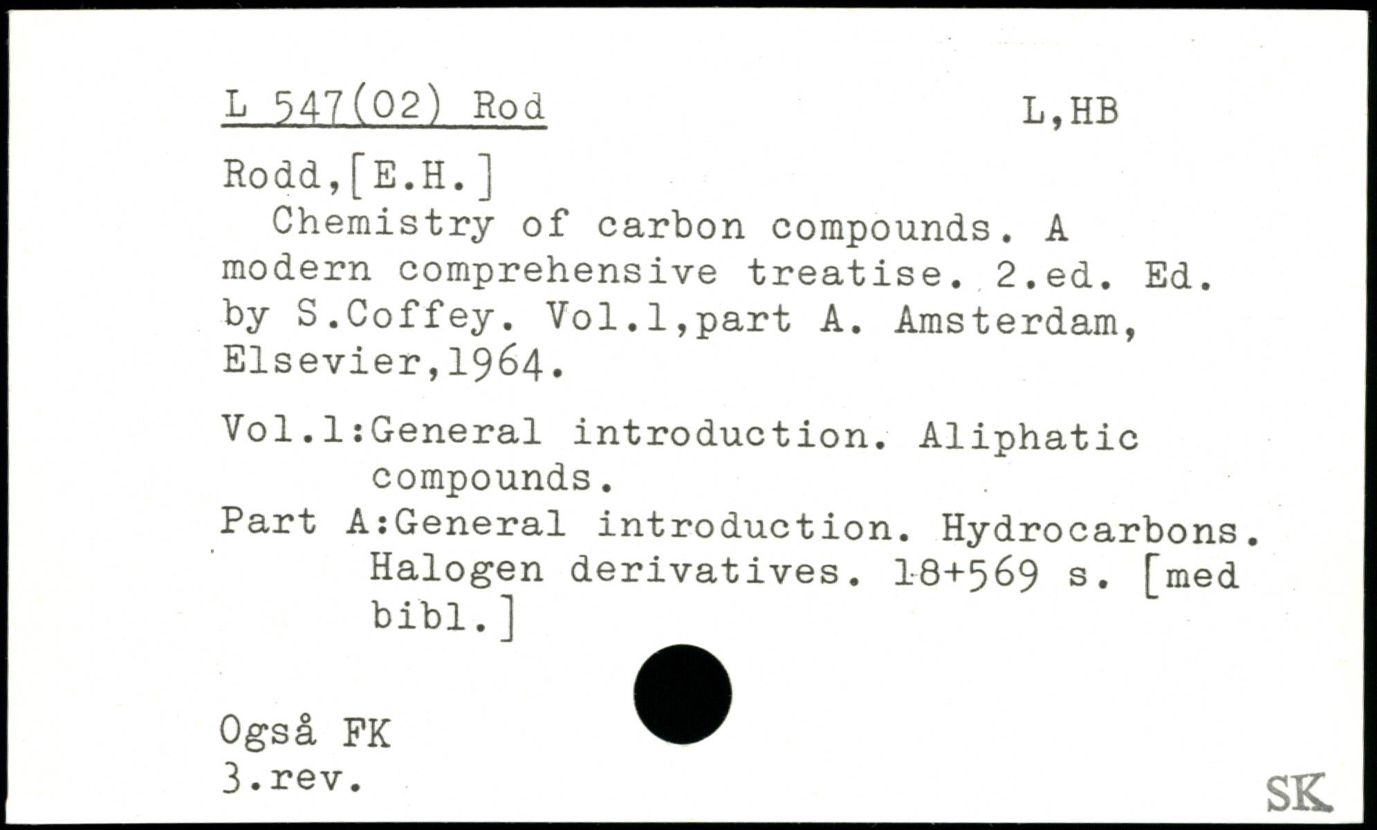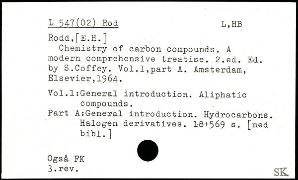Chemistry of carbon compounds. A modern comprehensive treatise.