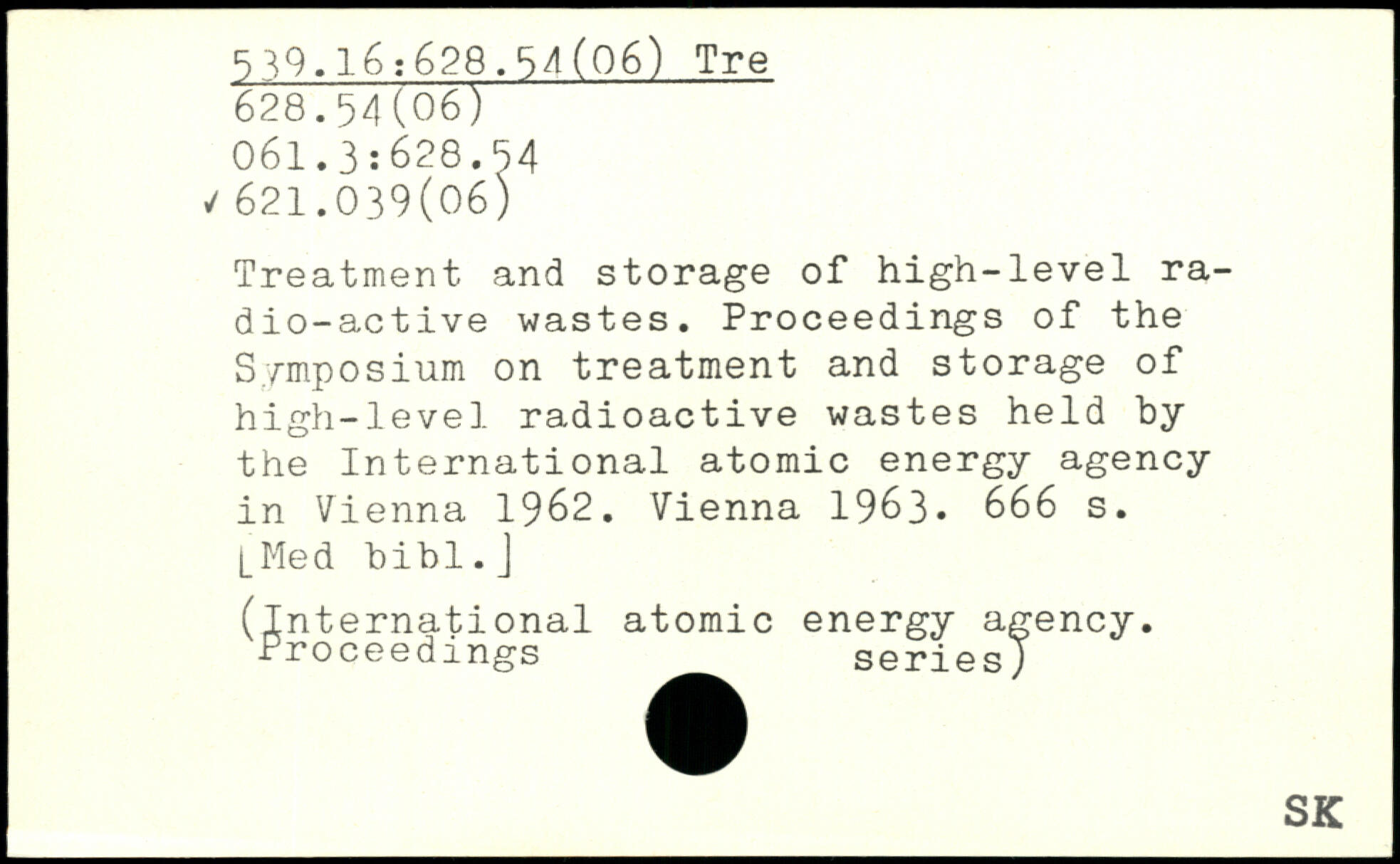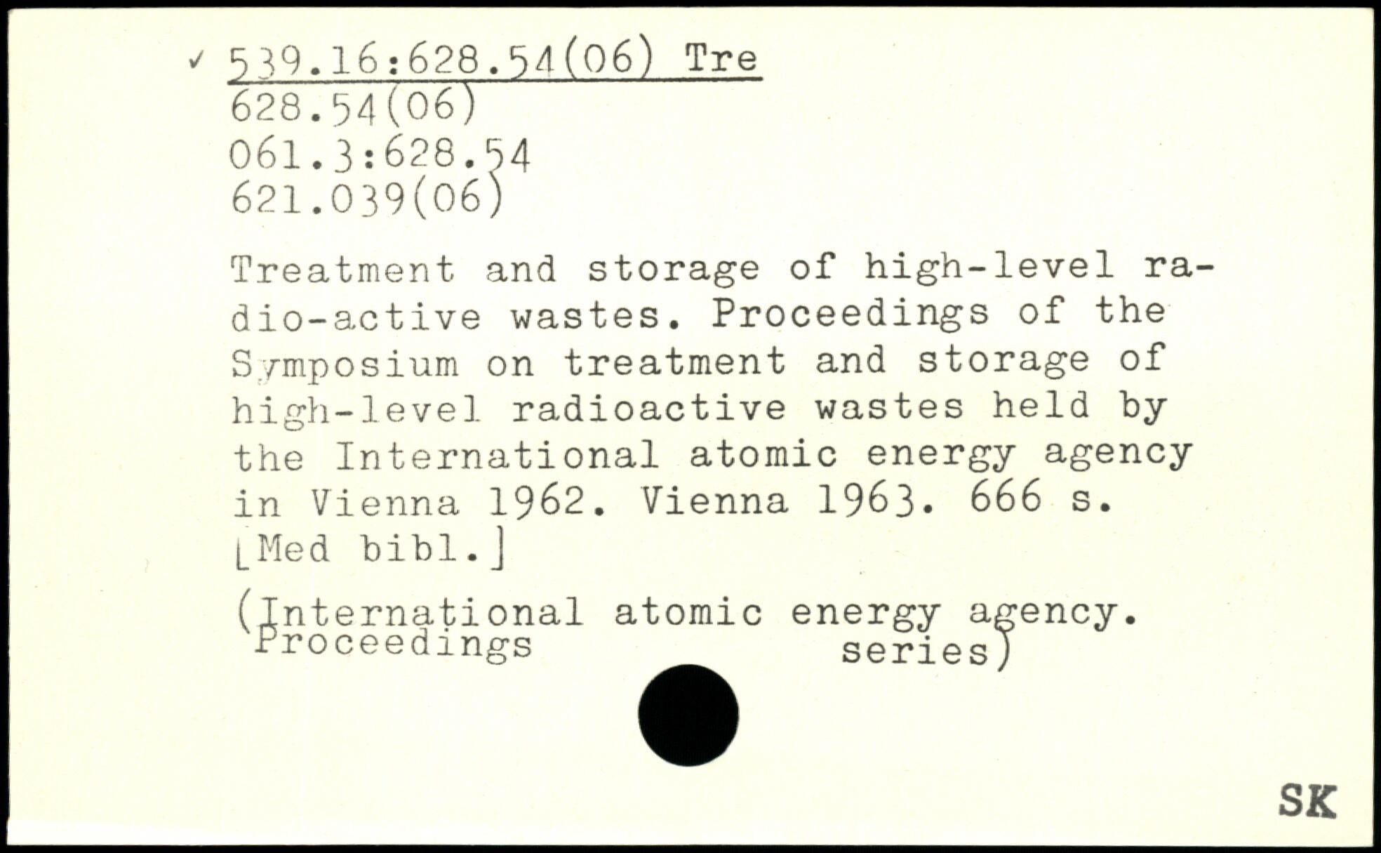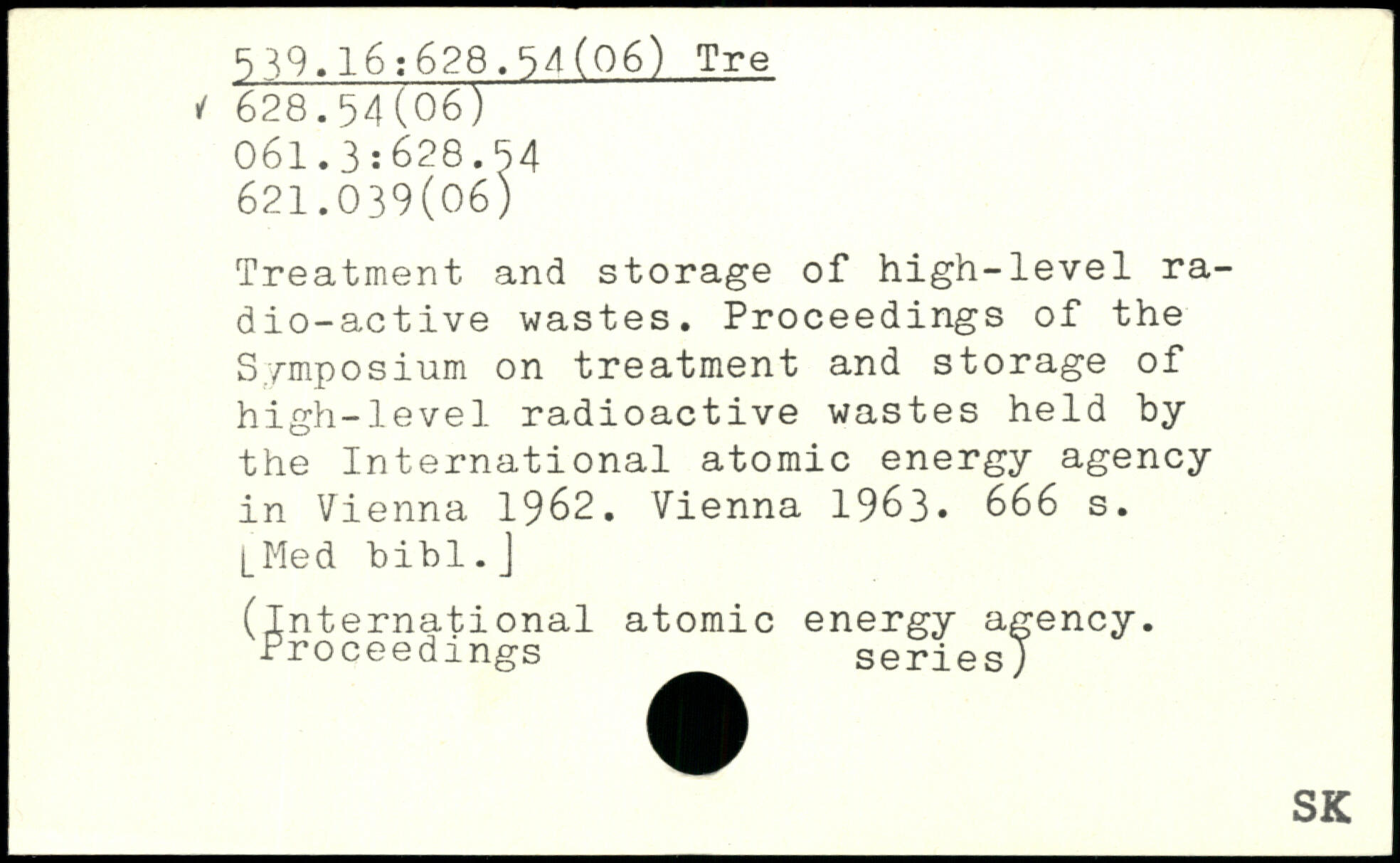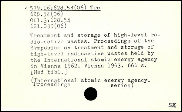 Treatment and storage of high-level radio-active wastes. Proceedings of the Symposium on treatment and storage of high-level radioactive wastes held by the International atomic energy agency in Vienna 1962. Vienna 1963.