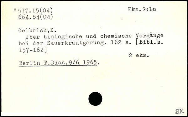 über biologische und chemische Vorgänge bei der Sauerkrautgarung.