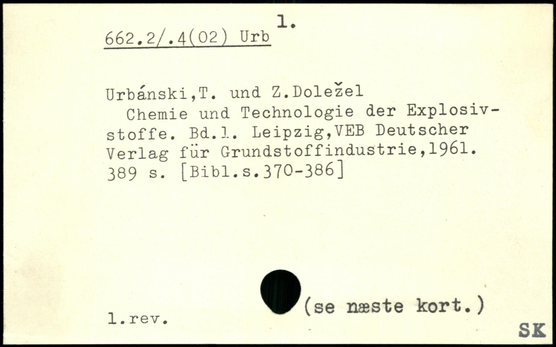 Urbânski,T. und Z.Dolezel Chemie und Technologie der Explosivstoffe.