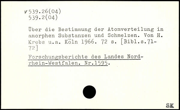 Über die Bestimmung der Atomverteilung in amorphen Substanzen und Schmelzen. Von H. Krebs u.a.