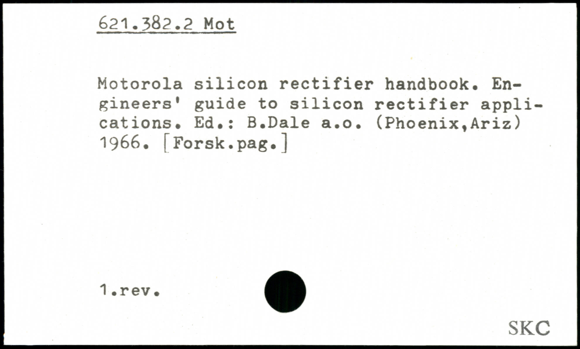 Motorola silicon rectifier handbook. Engineers' guide to silicon rectifier applications. Ed.: B.Dale a.o. (Phoenix,Ariz) 1966. [Forsk.pag.]