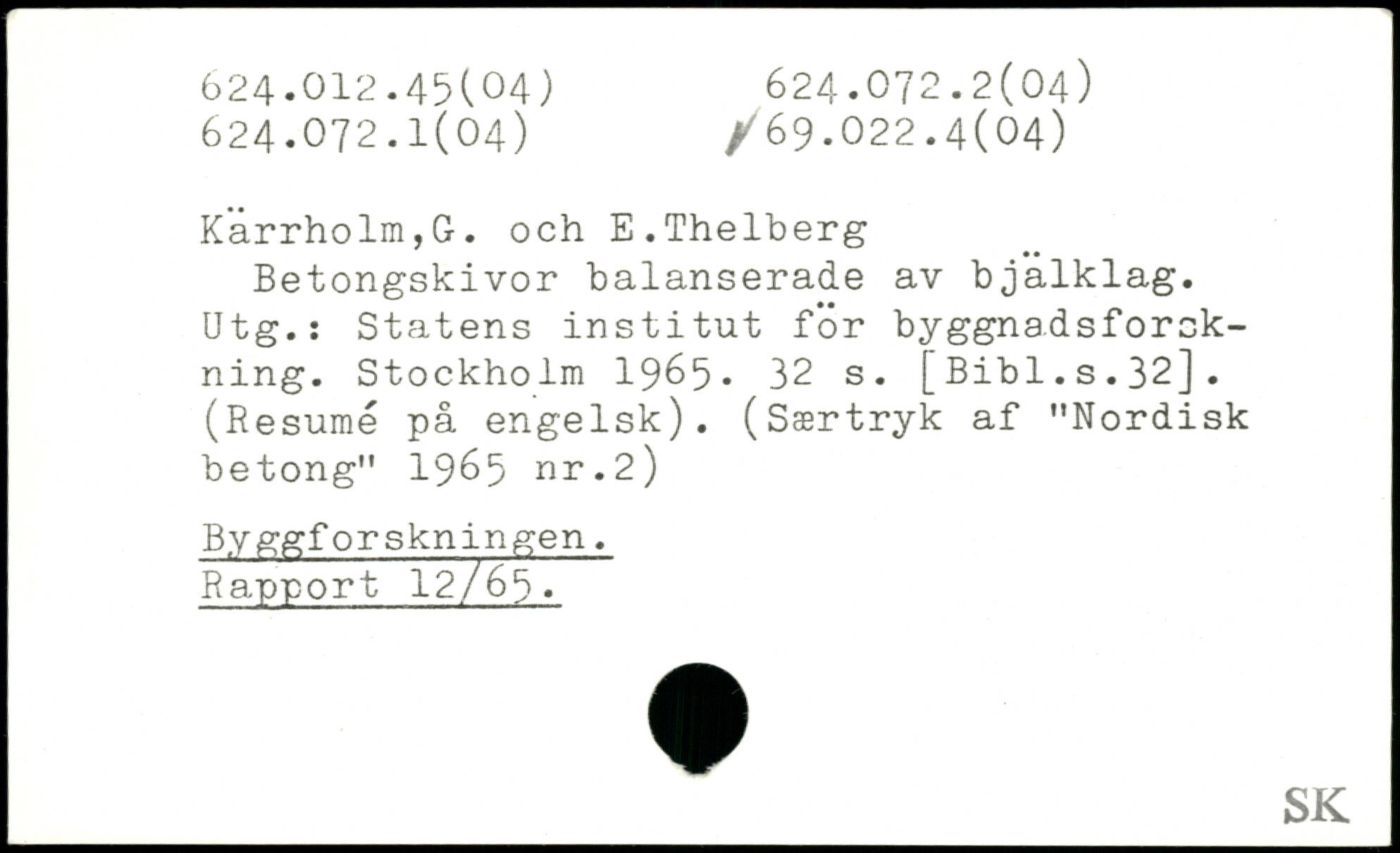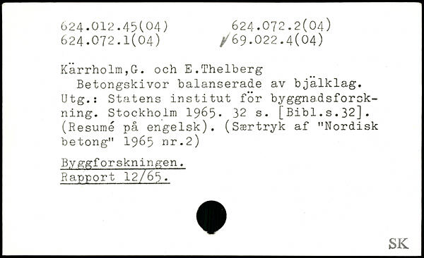 Betongskivor balanserade av bjalklag. Utg.: Statens institut för byggnadsforökning.