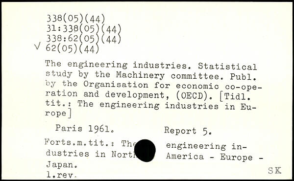 The engineering industries. Statistical study by the Machinery committee. Publ. the Organisation for economic co-operation and development, (OECD). [Tidl. tit.: The engineering industries in Europe J