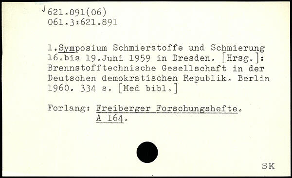 1.Symposium Schmierstoffe und Schmierung 16.bis 19.Juni 1959 in Dresden.