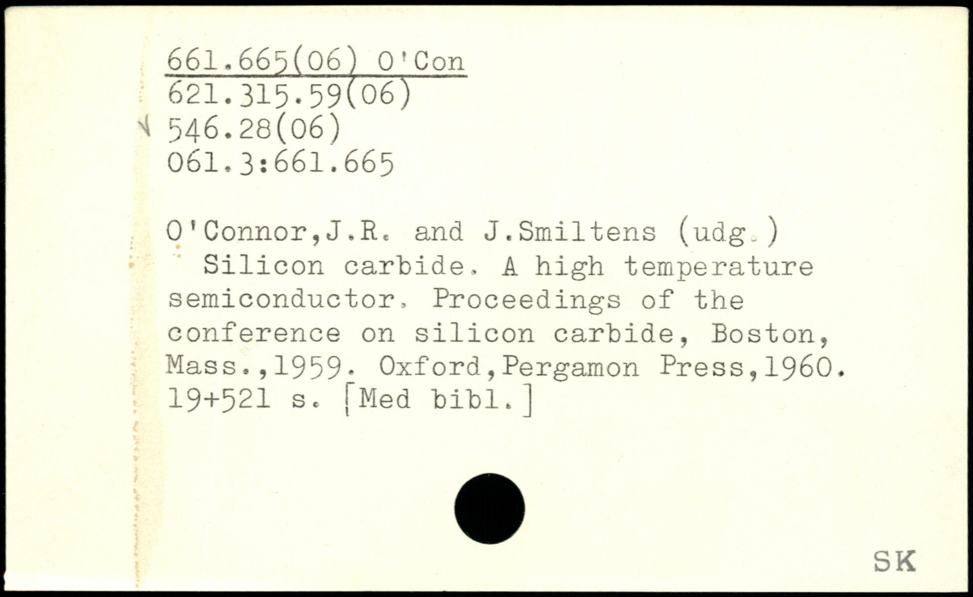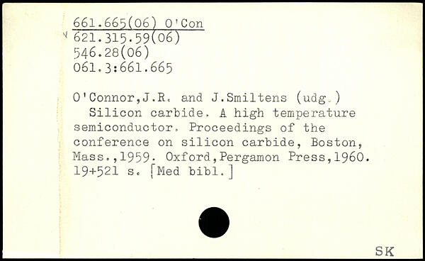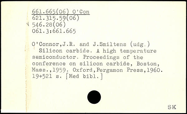 0'Connor,J.R. and J.Smiltens (udg,) Silicon carbide. A high temperature semiconductor, Proceedings of the conference on silicon carbide
