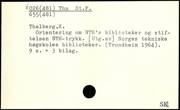Orientering om NTH's biblioteker og stiftelsen NTH-trykk. [Utg av] Norges tekniske I høgskoles biblioteker. (