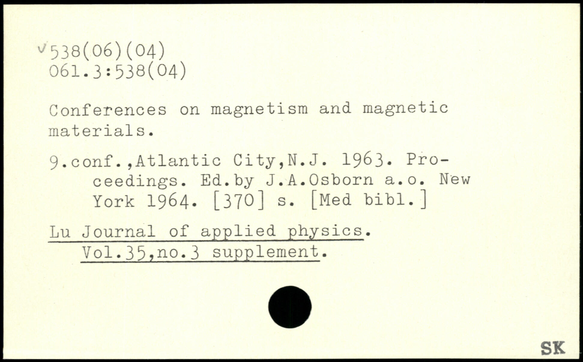 Conferences on magnetism and magnetic materials. 9.conf.,Atlantic City,N.J. 1963. Proceedings. Ed.by J.A.Osborn a.o.