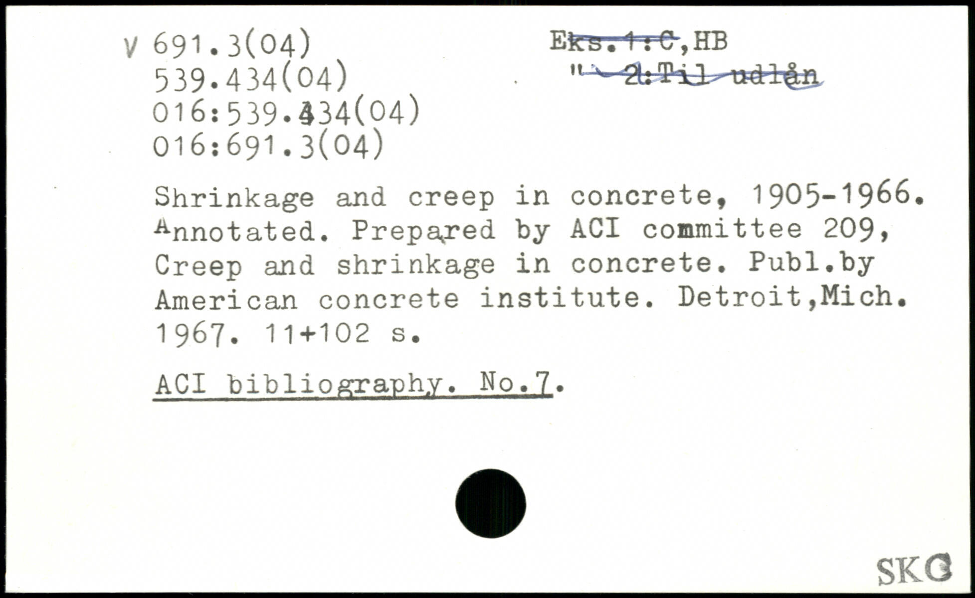 Shrinkage and creep in concrete, 1905-1966. Annotated. Prepared by ACI committee 209, Creep and shrinkage in concrete.