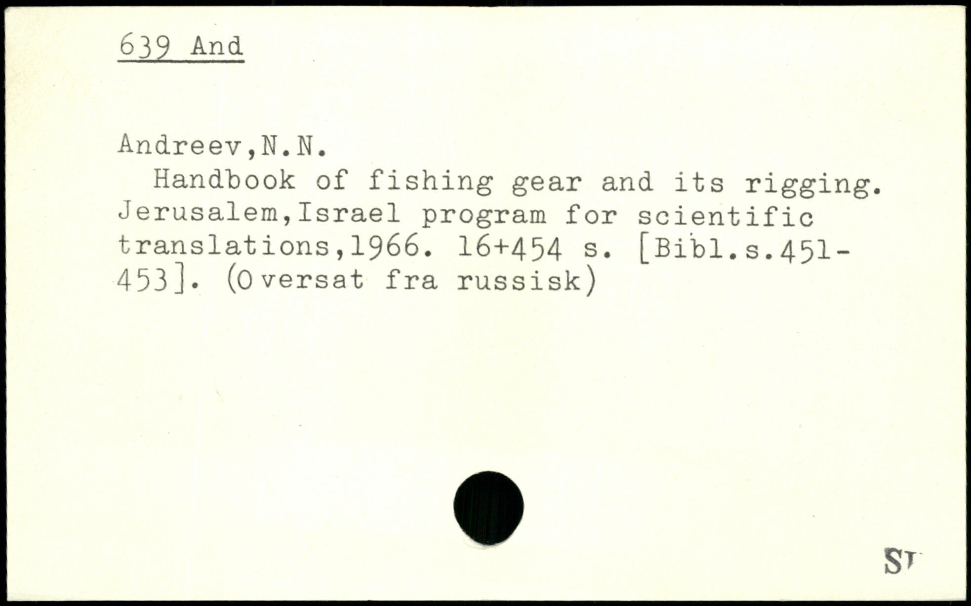 Handbook of fishing gear and its rigging. Jerusalem,Israel program for scientific translations , 1966. I