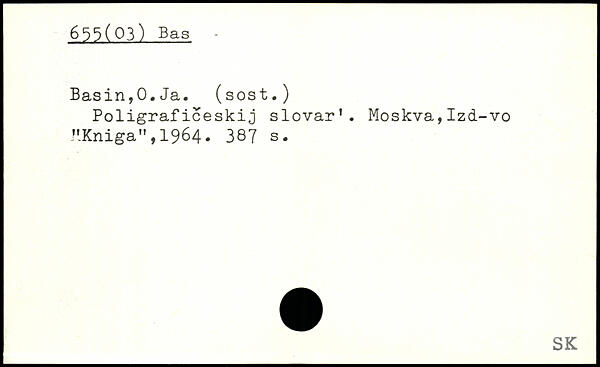 Basin,0.Ja. (sost.) Poligraficeskij slovar’. Moskva,Izd-vo "Kniga",1964.
