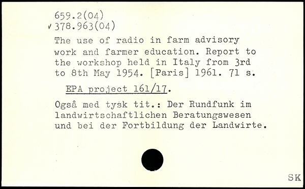 The use of radio in farm advisory-work and farmer education. Report to the workshop held in Italy from 3rd to 8th May 1954-